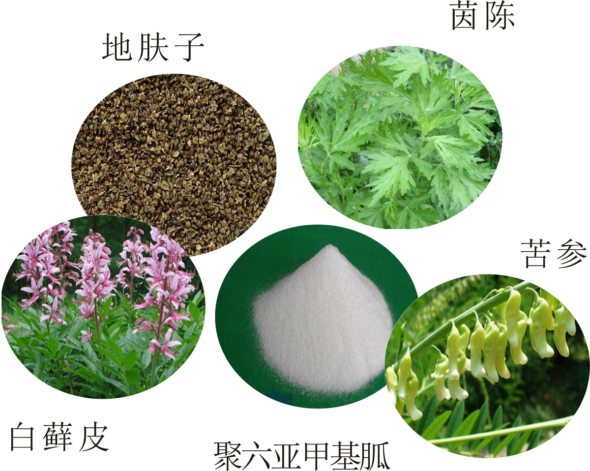 主要有效成份:白蘚皮、苦參、地膚子、茵陳、聚六亞甲基胍